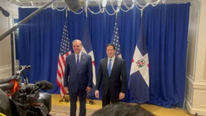 El presidente Luis Abinader se reunió hoy con el secretario de Estado de Estados Unidos, Marco Rubio, aprovechando su visita a la ciudad de Nueva